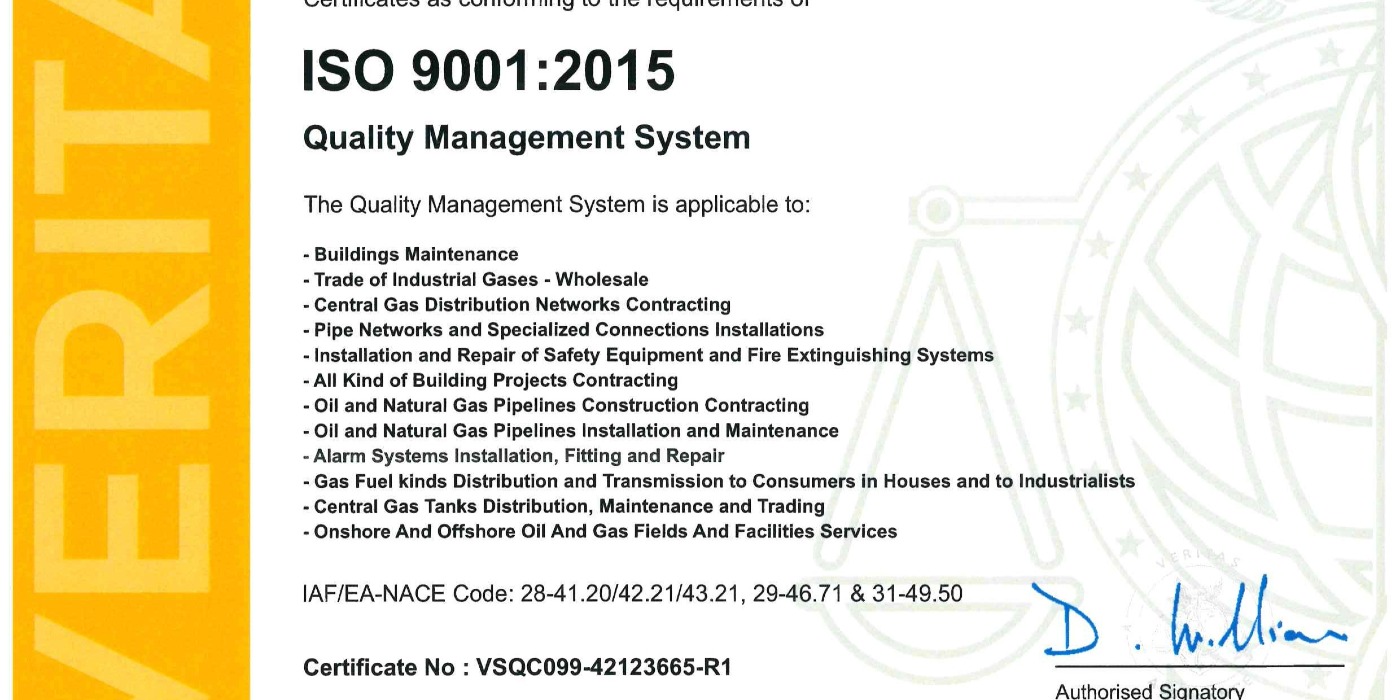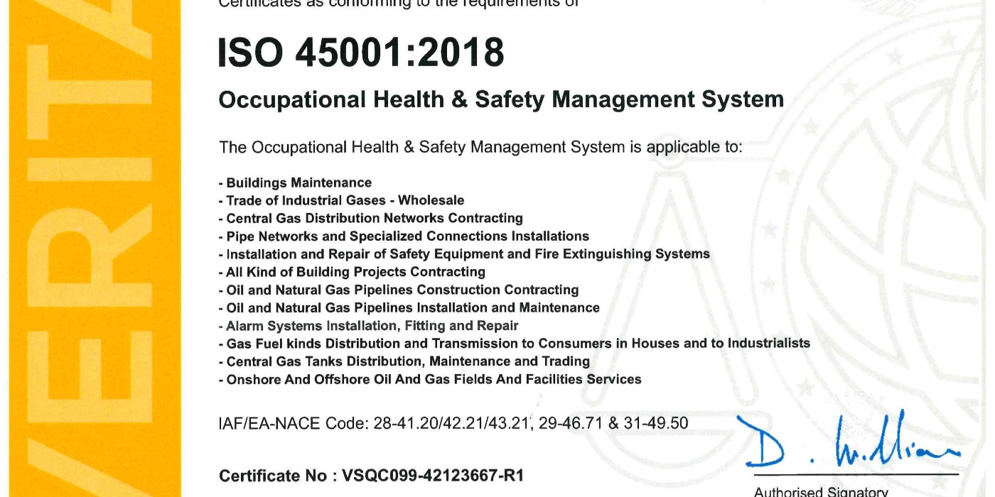 تمثل كل شهادة التزامًا عمليًا بأفضل الممارسات العالمية، والشفافية التشغيلية، والتحسين المستمر، بما يضمن تقديم حلول طاقة موثوقة، آمنة، ومستدامة لشركائنا وعملائنا والمجتمع.