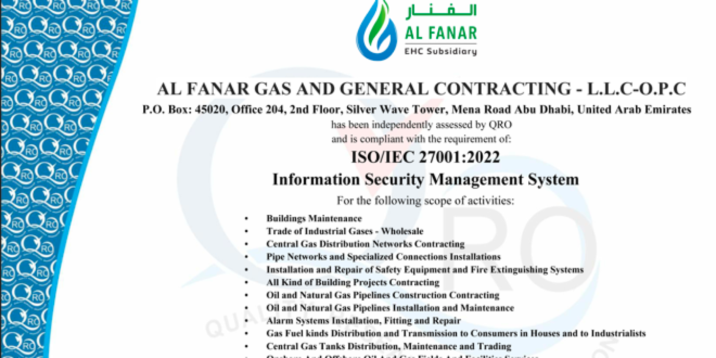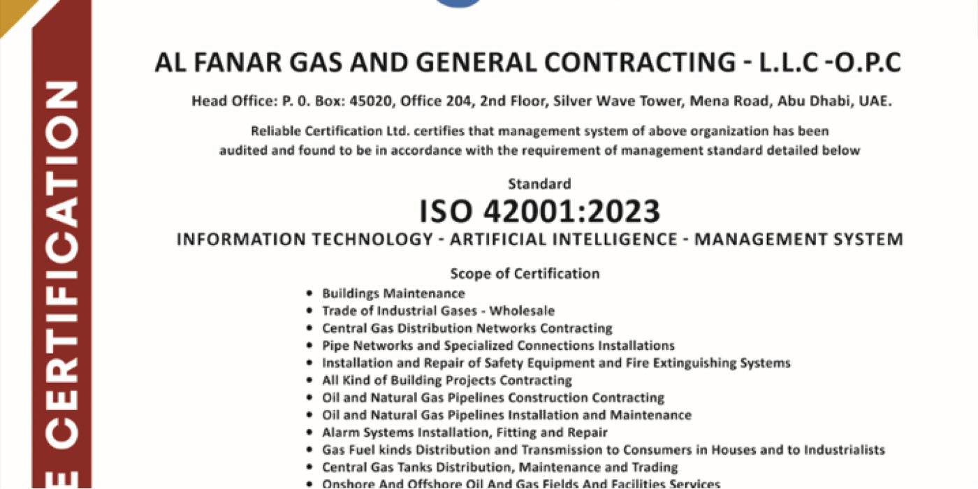 تؤكد هذه الشهادات مجتمعة التزام مجموعة الفنار للغاز بالسلامة التشغيلية، والمرونة الرقمية، والحوكمة الأخلاقية، والمسؤولية البيئية، والنمو القائم على الابتكار.